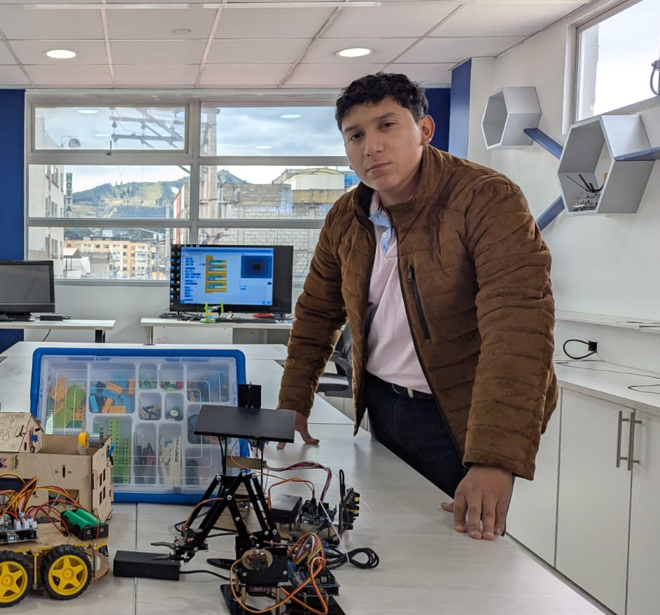 Especialista en la enseñanza de robótica con experiencia en Arduino, LEGO WeDo 2.0 y aplicaciones de Inteligencia Artificial. Diseña e imparte clases prácticas, creativas y adaptadas a niños y jóvenes, fomentando el pensamiento lógico, la innovación y el trabajo en equipo. Líder del proceso formativo en el Club de Robótica Quitumbe, con enfoque pedagógico STEAM y metodologías activas.